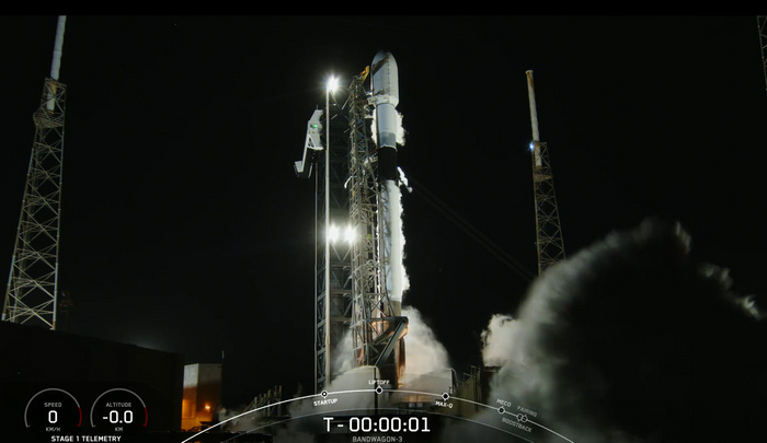 22일 오전 9시 48분(한국시간)에 미국 플로리다주 케이프커내버럴 우주군 기지에서 우리 군 슬롯비비고위성 4호기를 탑재한 미국 스페이스 X사의 우주발사체 '펠컨-9'가 발사됐다. ⓒ스페이스Ⅹ 홈페이지 캡처