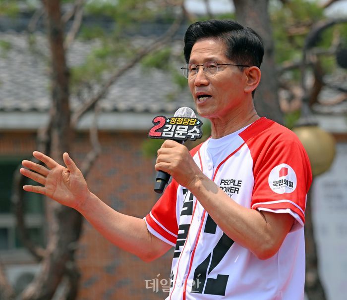 사전투표 하루 전인 이날 오후 부산에서 유세를 연 만큼 김 후보는 롯데자이언츠 유니폼을 입고 연단에 올랐다. 그는 "이재명은 연설 때 방탄조끼를 입고 나온다"며 "죄를 지은 사람은 방탄조끼를 두 벌, 세 벌 입어도, 방탄유리를 아무리 덮어도 양심부터 벌벌 떤다. 죄를 지은 사람은 감옥에 가야 한다"고 지적했다.