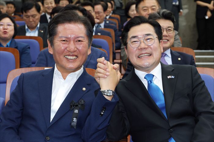 그는 정 의원이 자신을 '아웃복서'라고 비유한 것과 관련해선 "내가 야당일 때는 사실은 인파이터였는데 왜 지금은 아웃복서라고 이야기를 하느냐"며 "아웃복서는 일단 밀어붙여서 공격하고 기회를 얻는 것이 아니라 치밀하게 판단하고 포인트를 얻어가면서 전체 흐름을 조율한다"고 했다.