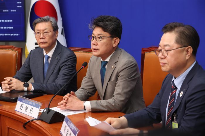 진성준 더불어민주당 정책위의장이 지난달 30일 오전 서울 여의도 국회에서 열린 민주당-경제단체 슬롯 꽁 머니 간담회에서 발언을 하고 있다. 왼쪽부터 김창범 한국경제인협회 부회장, 진 정책위의장, 박일준 대한상공회의소 부회장 ⓒ뉴시스