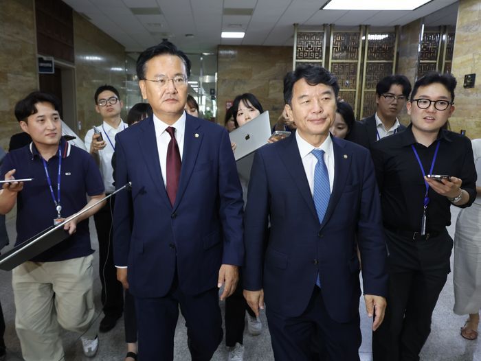 슬롯 무료체험 2 국민의힘 원내수석부대표(왼쪽)와 문진석 더불어민주당 원내수석부대표가 지난 2일 국회에서 현안 관련 회동 후 회의실을 나서며 취재진 질문을 받고 있다. ⓒ뉴시스