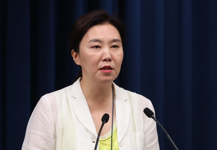 강유정 대변인이 15일 용산 온라인 슬롯사이트실 기자회견장에서 국무회의 관련 브리핑을 하고 있다. ⓒ연합뉴스
