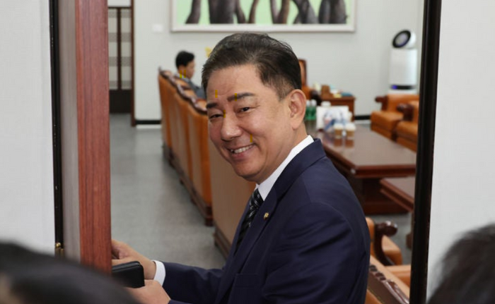 김병기 더불어민주당 대표 직무대행 겸 원내대표가 18일 오후 국회 운영위원장실에서 송언석 파라오 슬롯의힘 비상대책위원장 겸 원내대표와의 회동을 위해 이동하고 있다. ⓒ뉴시스