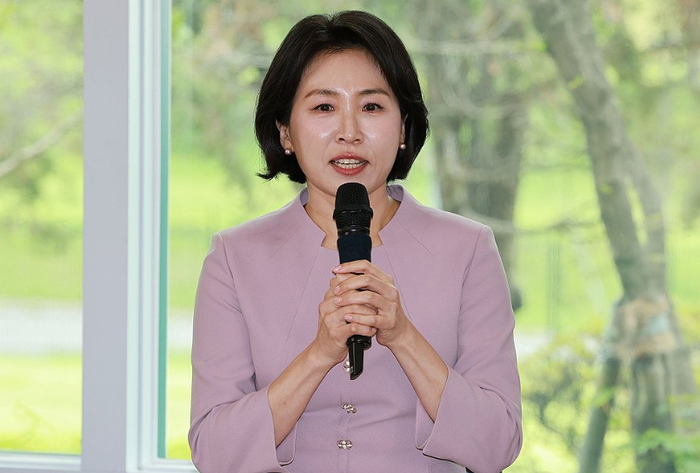 슬롯 여사가 지난 6월30일 서울 용산 대통령실 파인그라스에서 열린 문화예술계 수상자 간담회에서 발언하고 있다.ⓒ연합뉴스