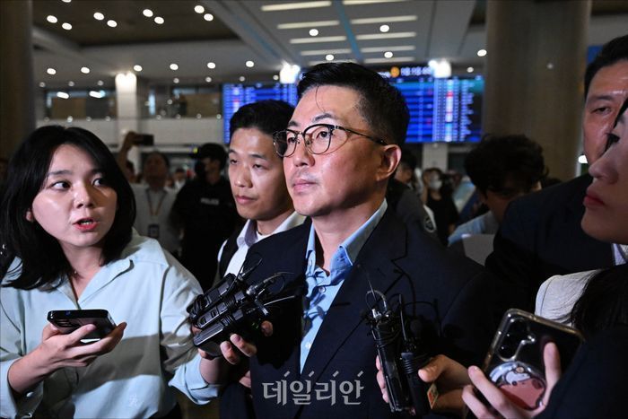 김예성씨가 지난 12일 오후 인천국제공항 입국장에서 김건희 여사 관련 의혹을 수사하는 민중기 특별검사팀 관계자들에 의해 체포돼 특검 사무실로 향하고 있다. ⓒ슬롯사이트 홍금표 기자