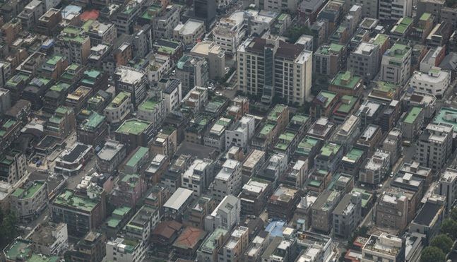 서울 송파구의 롯데월드타워 스카이라운지에서 다가구·다세대·연립주택이 보이고 있다. ⓒ 뉴시스