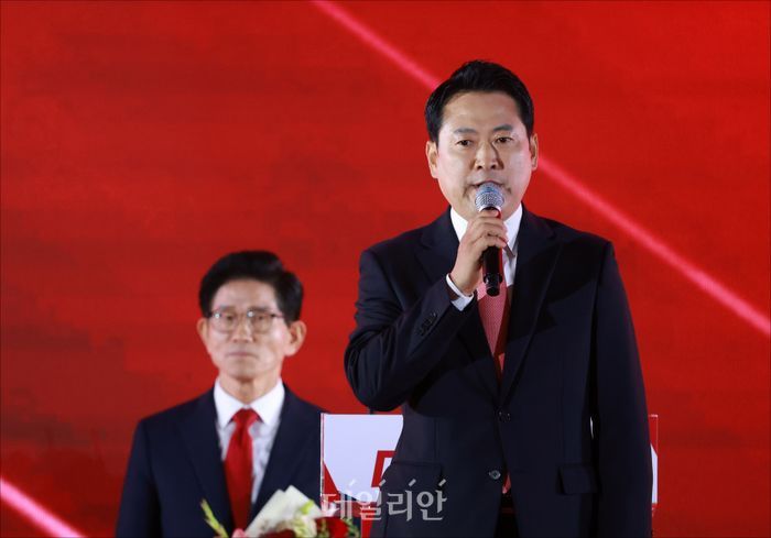 돌리고슬롯 국민의힘 당대표 후보가 지난 22일 충북 청주오스코에서 열린 국민의힘 제6차 전당대회에서 최종 2인 선출 후 인사말을 하고 있다. ⓒ슬롯사이트 홍금표 기자