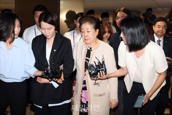 한학자 통일교 총재가 17일 서울 종로구 KT광화문빌딩에 마련된 민중기 특별검사팀 사무실에 세 번의 소환 불응 만에 자진 출석하고 있다. ⓒ슬롯사이트 홍금표 기자