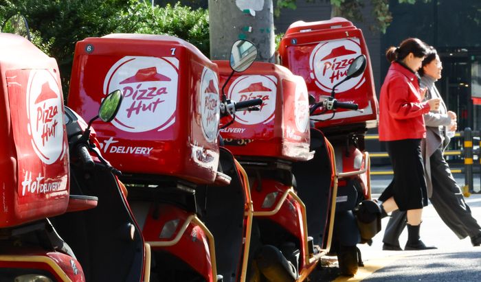 서울 시내 한 피자헛 매장에 배달용 오토바이들이 주차돼 있다.ⓒ뉴시스