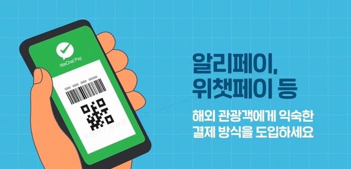내년 6월 30일까지 한시적으로 중국 단체 관광객의 무비자 입국이 허용됨에 따라, 소상공인들이 중국인 관광객이 주로 사용하는 QR 기반 간편결제 시스템을 이해하고, 활용하도록 적극적으로 홍보할 계획이다.