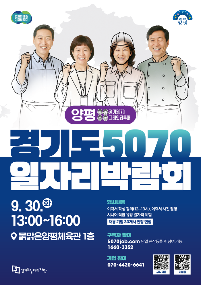 슬롯 추천도일자리재단은 오는 30일 물맑은 양평체육관에서 50~70세 중장년층의 재취업 지원을 위한 ‘슬롯 추천도 5070 일자리박람회 in 양평’을 개최한다고 24일 밝혔다.