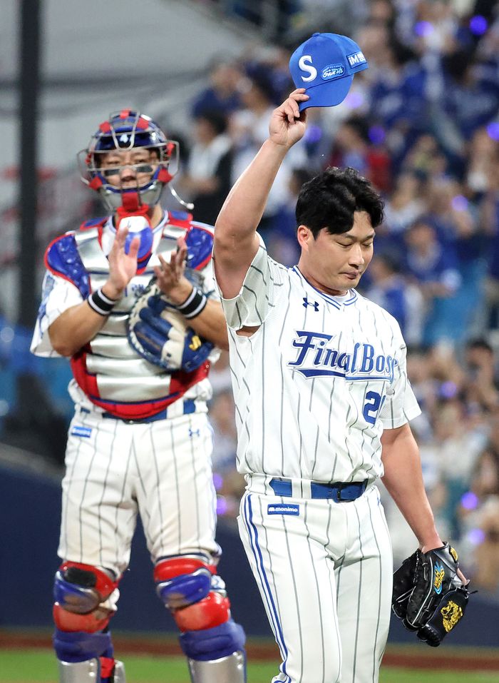 은퇴 경기를 마친 ‘끝판왕’ 오승환(슈퍼슬롯라이온즈)이 팬들 앞에서 작별 인사를 전했다.
