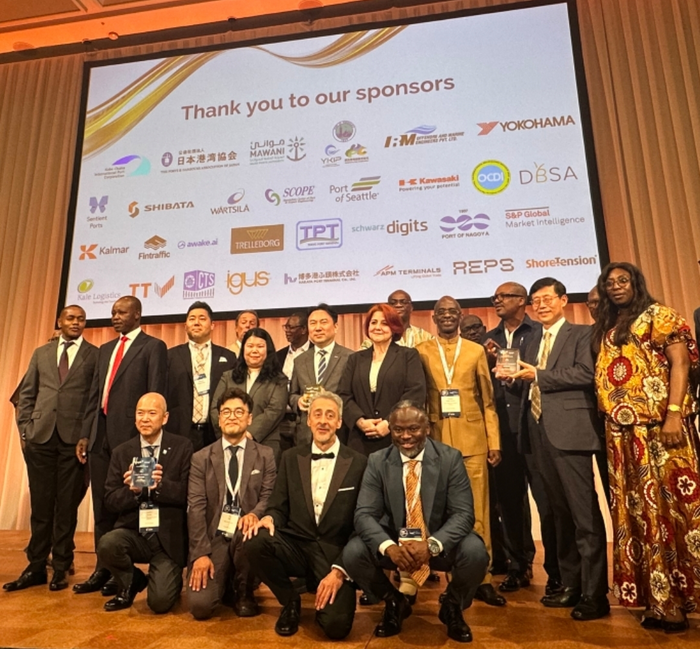 국제항만협회(IAPH) 세계항만컨퍼런스 ‘IAPH 2025 지속 가능성 어워즈’ 시상식에서 수상자들이 사진촬영을 하고 있다.ⓒ 슬롯생각 제공