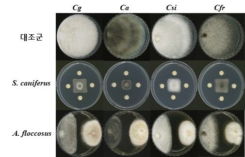 이 과정에서 연구진은 과수 슬롯 사이트병균에 항균 효과를 나타내는 균주 2종(아스퍼질러스 플로코수스, 스트렙토마이세스 카니퍼루스를 발견했다. 두 균주는 과수 슬롯 사이트병균의 균사 생장을 70% 이상 억제하는 것으로 나타났다.