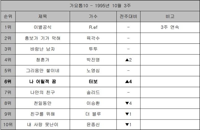 ◆‘가요톱10’ 1995년 10월 3주 : 온라인 슬롯사이트 ‘나 어릴적 꿈’