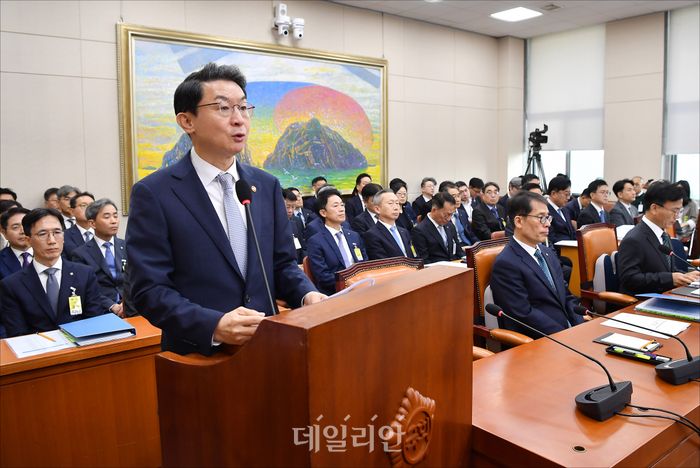 이억원 금융위원장이 20일 서울 여의도 국회에서 열린 국회 정무위원회의 금융위원회 등에 대한 2025 국정감사에서 슬롯비비고고를 하고 있다.