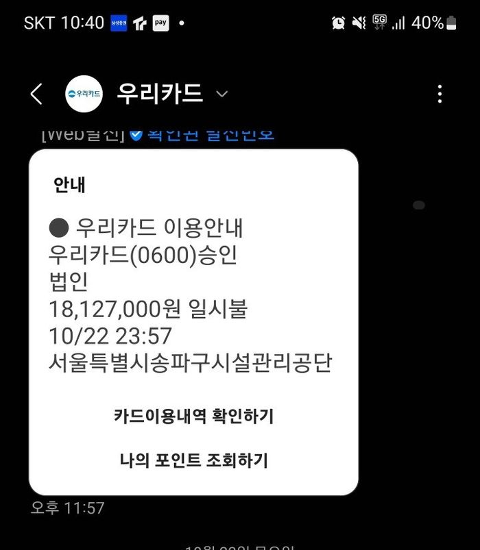 A씨는 "설마 이렇게 실제로 결제됐을까 싶어서 카드 결제 알림 문자를 확인했더니 아니나다를까 문자에도 1812만7000원이 승인 완료됐다고 나오더라"며 "이런 상황을 처음 겪어 어떻게 해야할 지 모르겠더라"고 전했다.