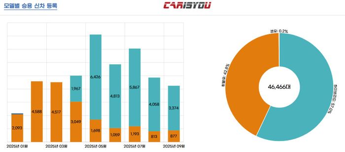 가장 판매가 많았던 5월에는 무료슬롯나라만 6426대가 등록됐고 이후에도 출시 첫 달을 제외하면 전체 판매의 약 80%를 꾸준히 유지했다. 1월 가솔린 모델로 먼저 출발한 뒤, 4월 무료슬롯나라가 합류하면서 판매 흐름이 자연스럽게 중심을 옮긴 셈이다.