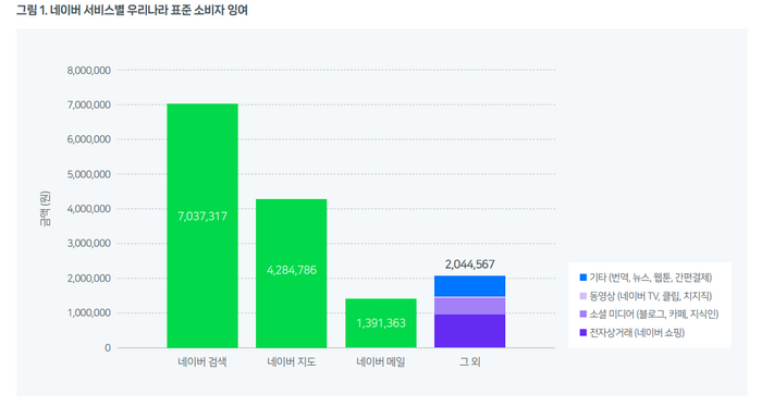 네이버 서비스별 우리나라 표준 소비자 잉여(자료 : 디지털 경제 리포트2025)ⓒKAIST 디지털혁신연구센터