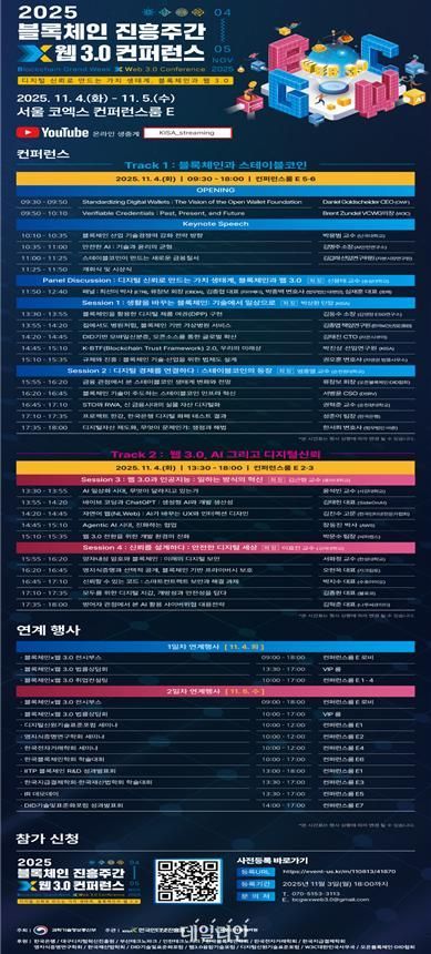 특히 전 세계 금융·기술계의 최신 화두인 스테이블코인과 인공지능(AI), 슬롯 무료체험 2 신뢰를 중심으로 산업과 일상의 변화를 체감할 수 있는 발표와 전시, 전문가 토론이 활발하게 이어질 예정이다.