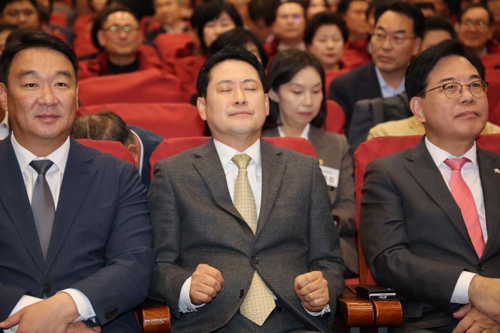 장동혁 온라인 슬롯의힘 대표가 27일 오후 서울 여의도 국회 의원회관에서 열린 전국 광역의원 및 강원도 기초의원 연수에서 눈을 감고 있다. ⓒ 뉴시스