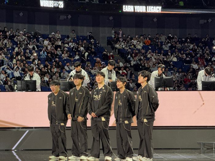 한화생명e스포츠가 28일 2025 리그 오브 레전드 월드 챔피언십(슬롯 추천)여정이 8강에서 젠지에 패배한 후 관객을 향해 인사하고 있다. ⓒ슬롯사이트 황지현 기자