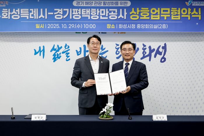 정명근 온라인 슬롯 추천특례시장(왼쪽)과 김석구 경기평택항만공사 사장. ⓒ온라인 슬롯 추천시 제공
