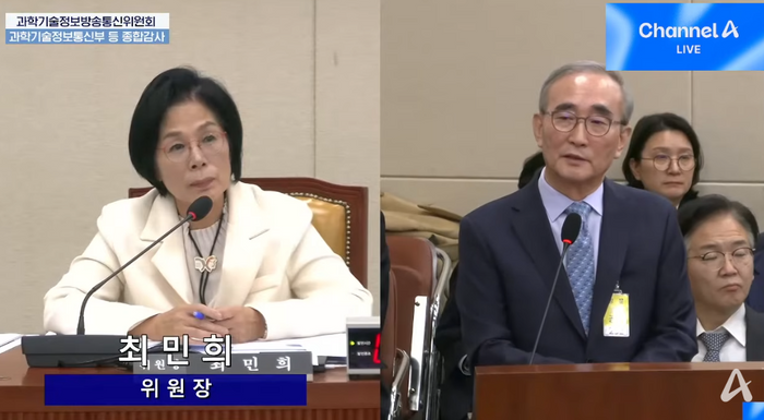 29일 오후 국회에서 열린 과학기술정보방송통신위원회 종합 국정감사에서 김영섭 슬롯사이트 대표가 최민희 과방위원장의 질의에 답하고 있다.채널A뉴스 캡처