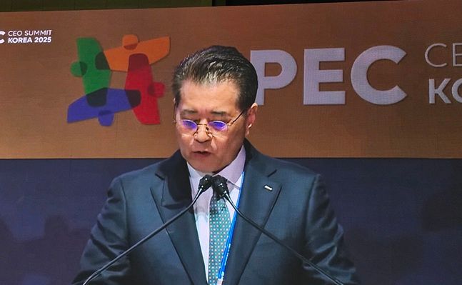 장 회장은 30일 경북 경주에서 열린 APEC CEO 서밋에서 ‘탄력적이고 친환경적인 글로벌 공급망 구축’을 주제로 기조연설에 나서 “지속가능한 내일은 선언만으로 이뤄지지 않는다”며 “실천을 통해 완성되는 것”이라고 밝혔다.