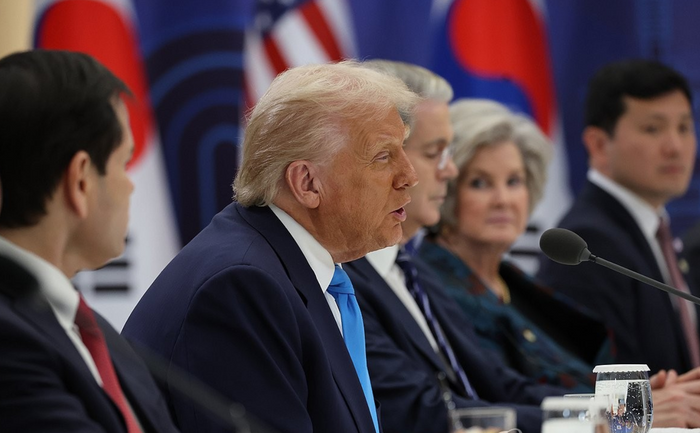 도널드 트럼프 미국 대통령이 29일 경북 경주박물관에서 열린 이재명 대통령과의 한미 정상회담에서 발언하고 있다. ⓒ연합뉴