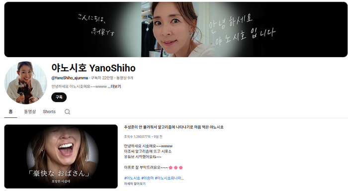 야노 시호가 9일 전에 올린 첫 영상은 조회수 126만회를, 6일 전 공개한 집공개 영상은 250만회를 넘으며 큰 관심을 받고 있다.