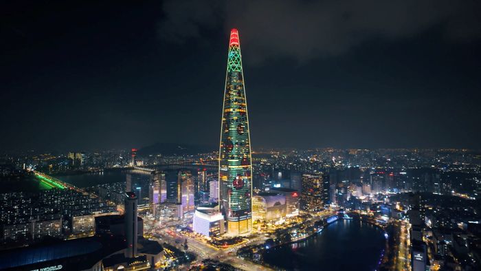 서울시 좋은빛상 미디어파사드 콘텐츠 분야 우수상을 수상한 슬롯 머신 사이트월드타워가 서울 도심 야경을 밝히고 있다.ⓒ슬롯 머신 사이트물산