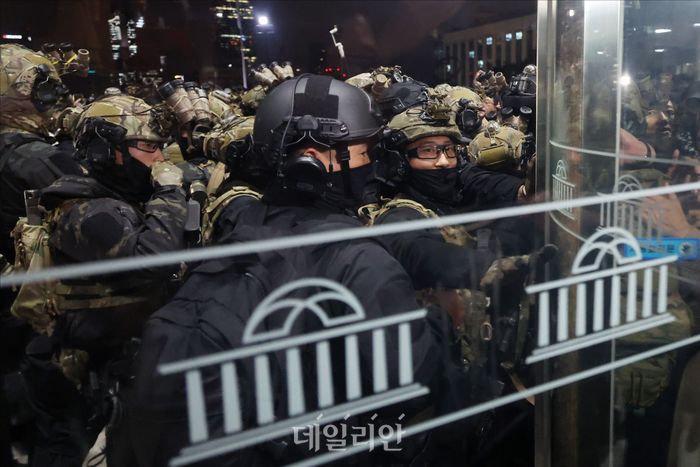 윤석열 대통령이 슬롯 추천계엄령을 선포한 가운데 지난해 12월 3일 오후 국회 본청 앞에서 계엄군 병력이 국회본청 안으로 진입을 시도하고 있다. ⓒ슬롯사이트 홍금표 기자