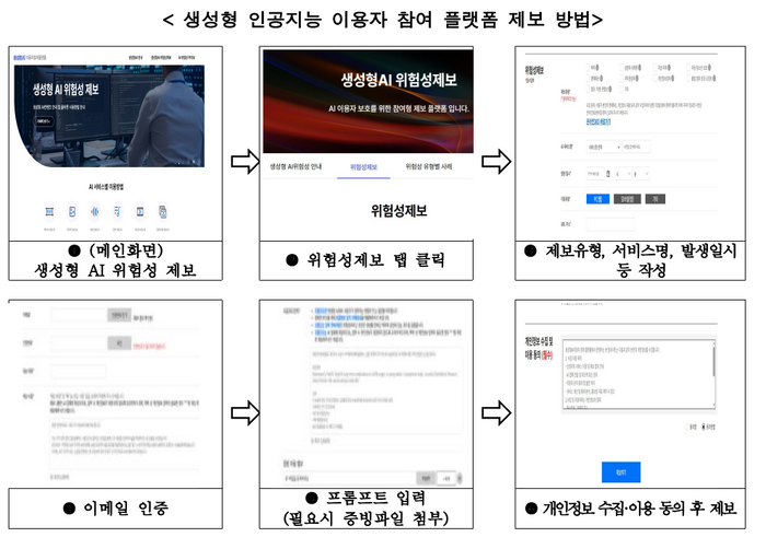 이용자는 생성형 인공지능 서비스 이용 중 발견한 폭력이나 성범죄·성희롱 등 다양한 위험 사례를 이용자 참여 플랫폼을 통해 무료 슬롯하고, 이는 해당 사업자에게 전달돼 사업자의 자율적인 서비스 개선을 유도한다.