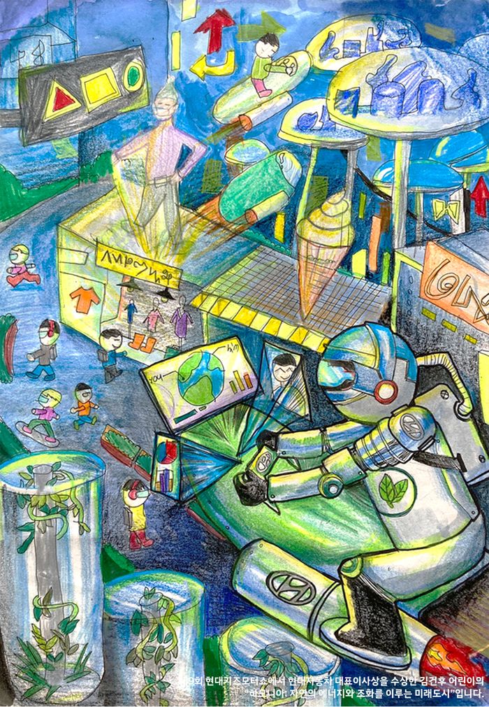 제9회 슈퍼슬롯자동차 대표이사상 수상자 김건후 어린이의 '하모니아 자연의 에너지와 조화를 이루는 미래도시' 작품 이미지ⓒ슈퍼슬롯자동차