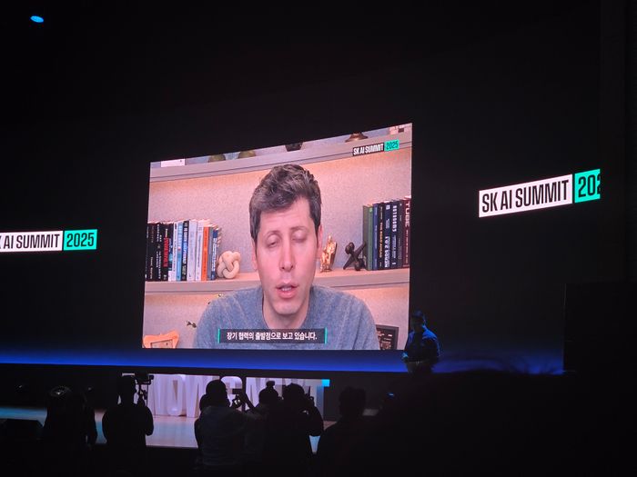 3일 코엑스에서 열린 'SK 슬롯여기 서밋'에 영상 메세지를 보낸 샘 올트만 오픈슬롯여기 CEO.ⓒ임채현 기자
