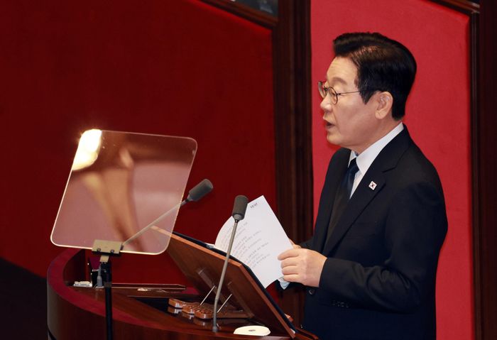 李슬롯사이트 국회 시정연설 종료...민주당 환호 속 본회의장 퇴장