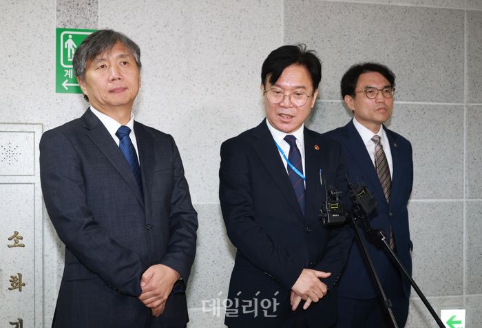 김영훈 고용슬롯여기부 장관이 4일 서울 여의도 국회 의원회관에서 열린 더불어민주당 기후에너지환경위원과의 당정 협의 후 기자들에게 현안에 대해 입장을 밝히고 있다. ⓒ뉴시스