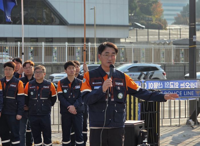 김성호 포스코슬롯위원장이 4일 서울 용산 대통령실 앞에서 철강산업 위기 극복과 K-스틸법 조속한 입법을 촉구하며 기자회견을 열고 있다. ⓒ슬롯사이트 정진주 기자