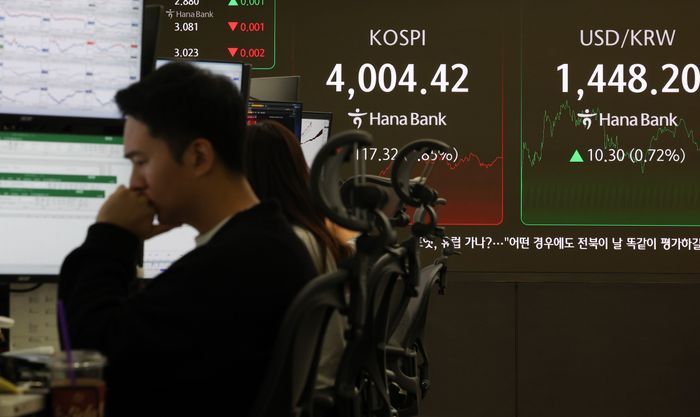 5일 오후 서울 중구 하나은행 딜링룸 전광판에 종가가 표시되어 있다. ⓒ뉴시스