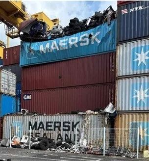 이 사고로 인근에 있던 컨테이너 13개와 야적장 철제 펜스 등이 파손됐다.