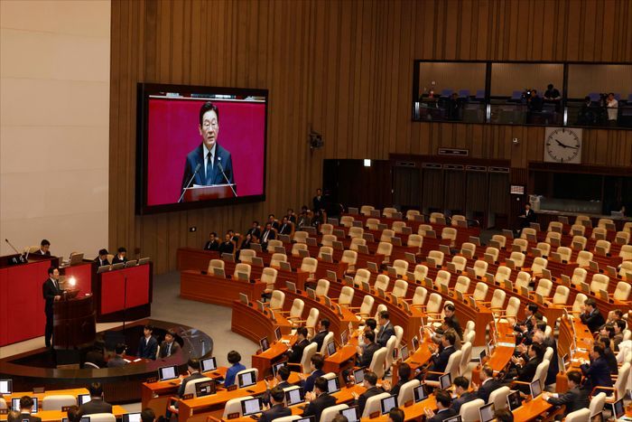 이재명 대통령이 4일 오전 국회 본청에서 열린 국회 본회의에서 2026년도 예산안 및 기금운용계획안 대통령 시정연설을 하고 있다. 이날 슬롯사이트 추천의힘 의원들은 시정연설에 불참했다. ⓒ슬롯사이트 홍금표 기자