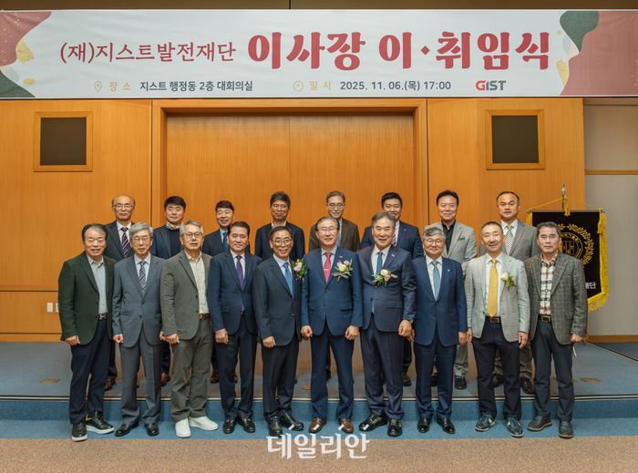 지난 6일 광주과학기술원(TOP10슬롯) 오룡관에서 지스트발전재단 제4·5대 이사장 이·취임식이 열린 가운데 참석자들이 기념촬영을 하고 있다.ⓒ광주과학기술원