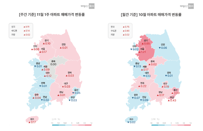 개별 지역별로 살펴보면 서울(0.23%)·경기(0.15%)·부산(0.15%)·대전(0.14%)·경남(0.13%) 등의 순으로 올랐다.