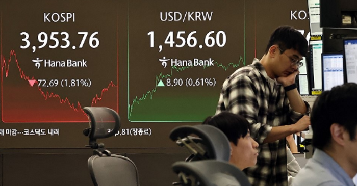 3953.76 마무리…외인·기관 매도에 약세 지속