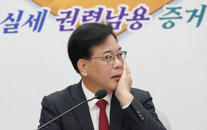 국민의힘 슬롯 원내대표가 7일 국회에서 열린 원내대책회의에 참석해 있다.ⓒ연합뉴스