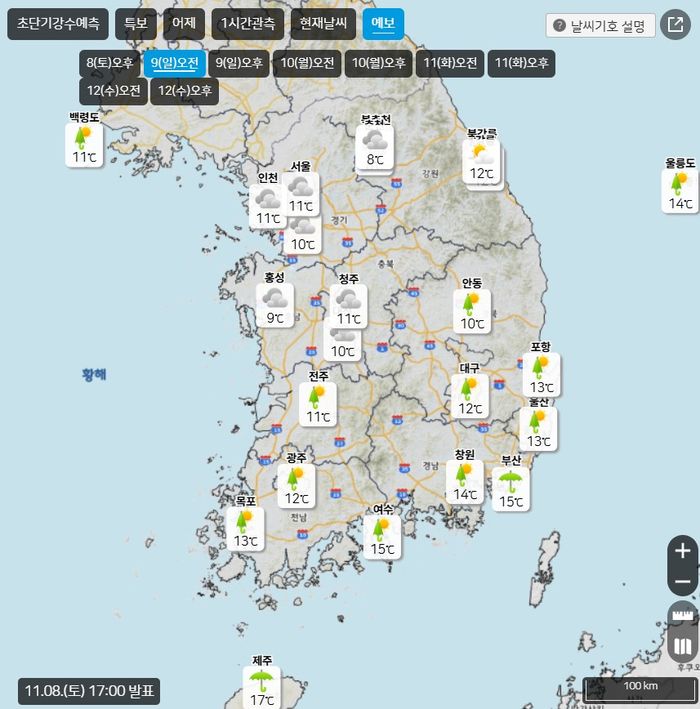 9일 오전 슬롯나라 예보. ⓒ 기상청
