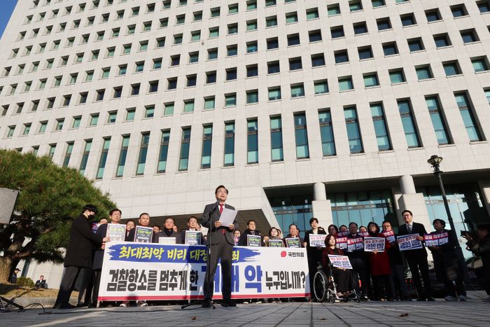 슬롯여기의힘 송언석 원내대표가 11일 서울 서초구 대검찰청 앞에서 검찰의 대장동 개발 비리사건 항소 포기를 규탄하고 있다.ⓒ연합뉴스