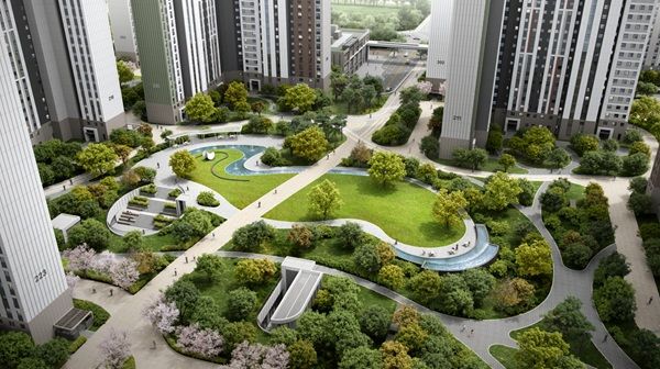 '운정 온라인 슬롯사이트파크 포레스트' 단지 내 조경 공간 ‘시그니처필드’의 모습. ⓒHDC현대산업개발