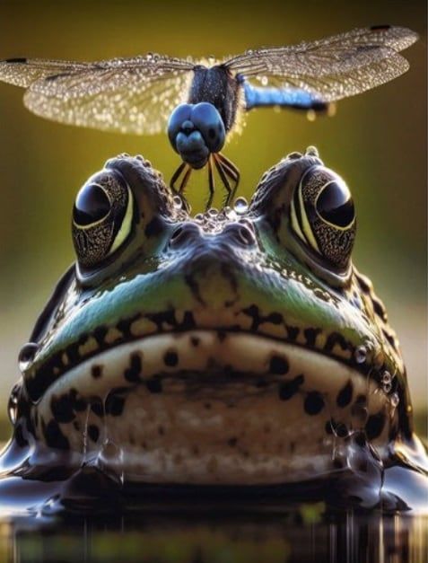 해당 작품은 잠자리가 개구리 머리 위에 앉은 순간을 포착한 TOP10슬롯으로 "유머와 뛰어난 구도"라는 호평을 받으며 최우수상을 받았다.